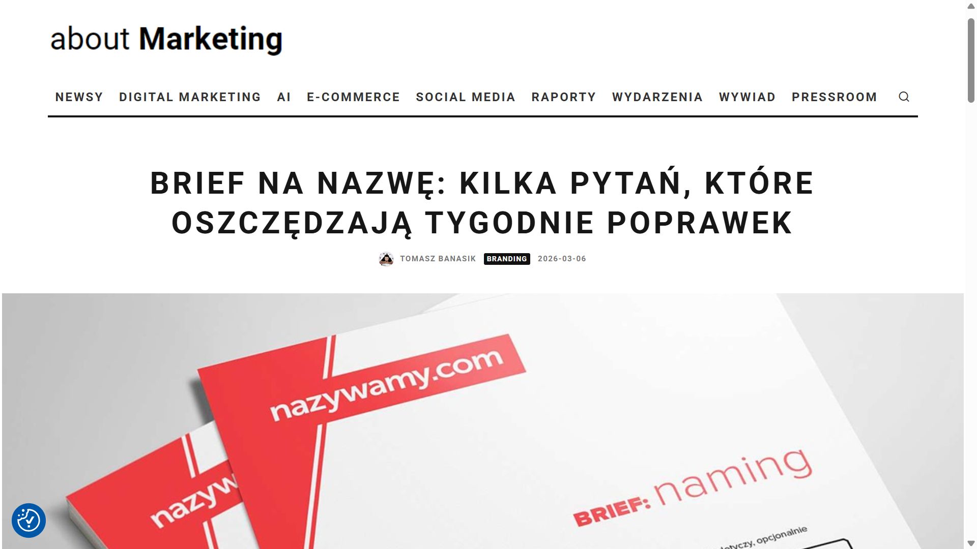 Nowy tematyczny serwis o marketingu, dobrze znane tematy. Wracamy dziś do podstaw, czyli w artykule dla About Marketing o nazwie: „Brief na nazwę: kilka pytań, które oszczędzają tygodnie poprawek” odpowiadamy na… w zasadzie to tytuł publikacji zdradza, na co.